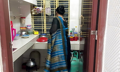 tamil milf matrigna bloccato sotto il letto con il bianco saree & amp; nero camicetta, quando lei pulizia sotto il letto poi figliastro il suo cazzo
