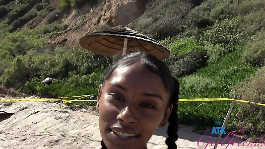 Dark-hued nubile Sarah Banks eventually gets to rail a trouser snake outdoors