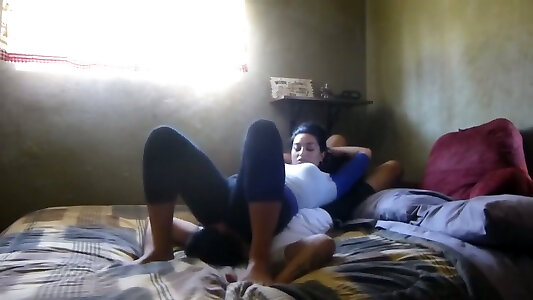 Two girls, Lucy 1minute sex of beautiful gir and Rosa Rosebud, share a big cock in an ffm threesome