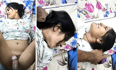 desi stepsis took her stepbro room for a night where he want to sleep with sizzling nubile stepsister in Hindi